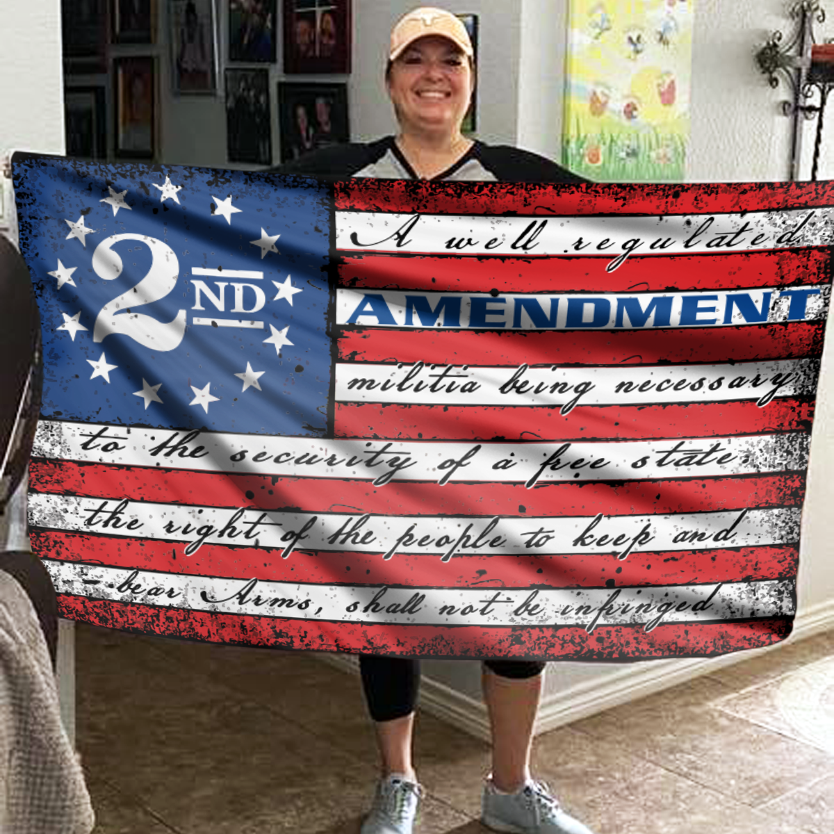 This flag was beautifully made. Larger than what you would usually find at the local hardware store and well made. I am proud to have it hanging on the front of my house.